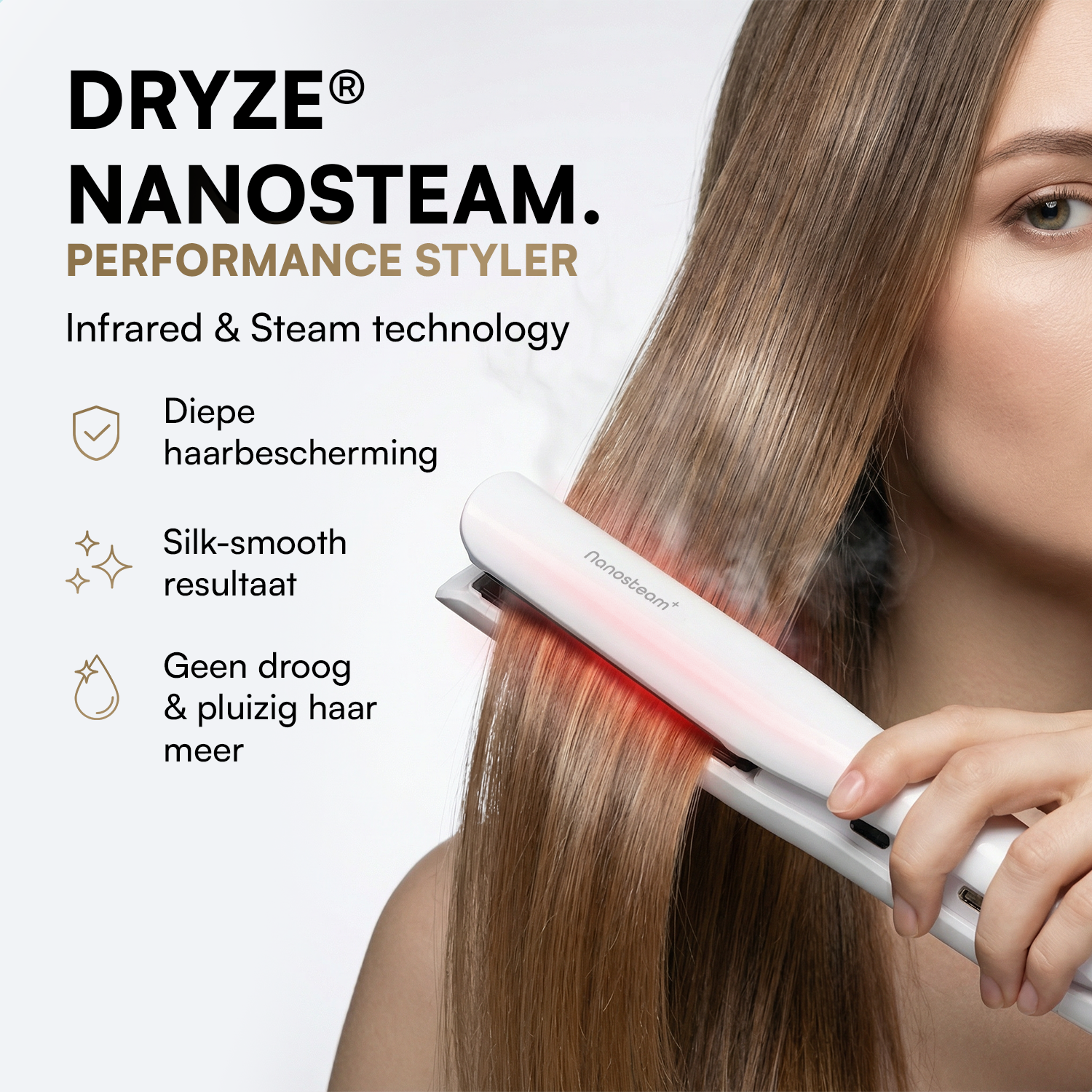 De Dryze NanoSteam® is speciaal ontwikkeld om één van de grootste stylingproblemen aan te pakken: haar dat droog, pluizig of futloos wordt.