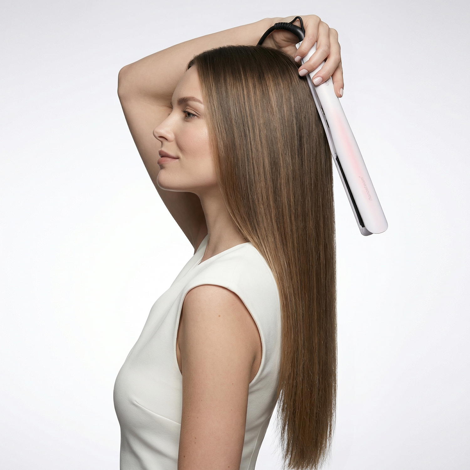 Stijlen met stoom. Stralen met glans.Zeg vaarwel tegen droog, pluizig of futloos haar. Met de Nanosteam ervaar je een compleet nieuwe manier van stylen, sneller, zachter en zichtbaar gezonder haar.Langdurig pluisvrij resultaat
